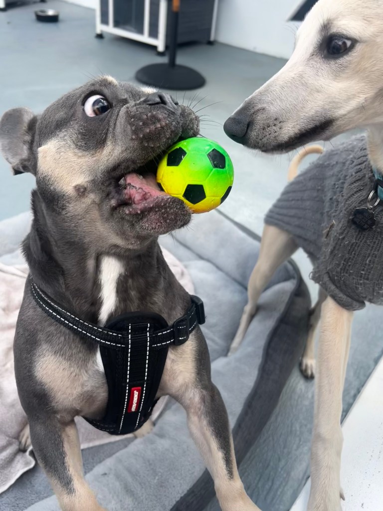 At Fur Friends Fun House, social play is always supervised and never forced. Dogs are introduced gently, given choice, and supported at their own pace. Our focus is on creating positive, pressure‑free experiences that help dogs feel safe and confident.